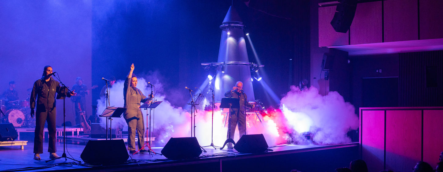 Il est rare qu’un concert de rock prenne un thème politique comme point de départ pour un spectacle. Dans l’opéra rock Space Deal, les musiciens d’El Polizon se plongent corps et âme dans la problématique de la militarisation et de la colonisation de l’espace.